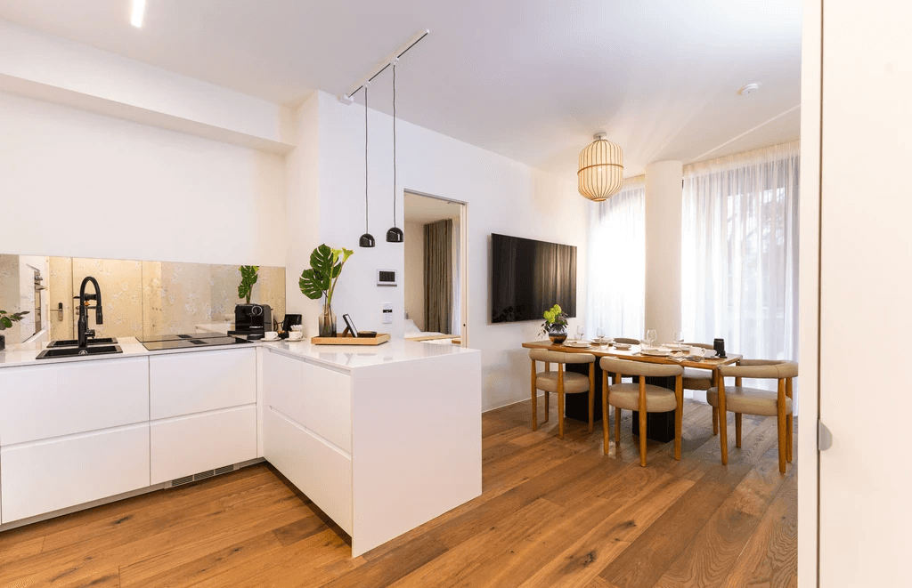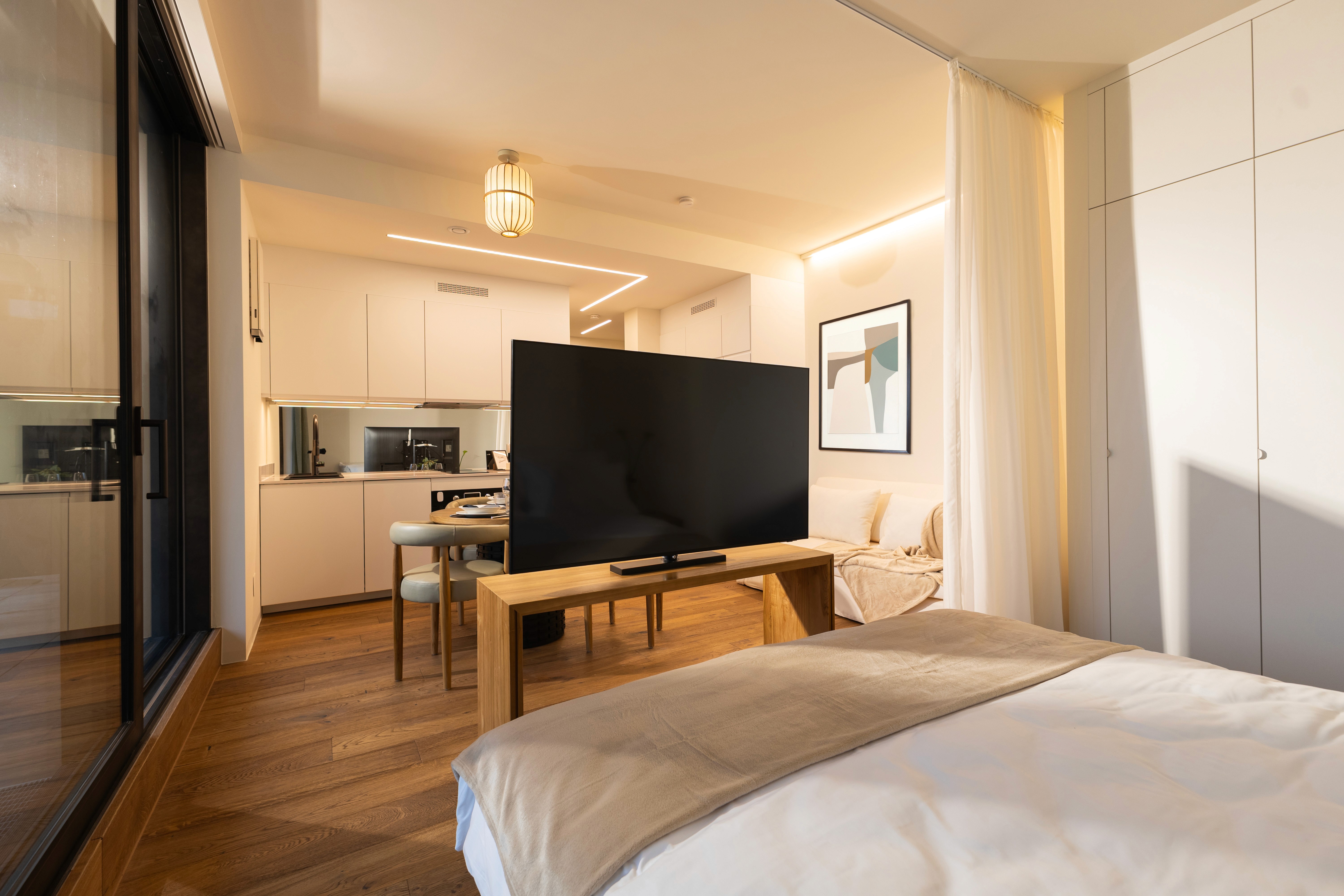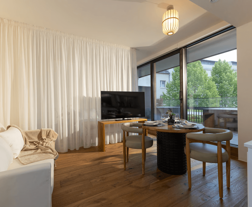 Unsere Apartments vereinen den JAPANDI-Stil – skandinavische Schlichtheit trifft japanische Ästhetik. Helle Töne wie Weiß, Creme und Sand treffen auf erdverbundene Akzente in Schwarz, Braun und Grün. Klare Linien und funktionales Design schaffen Räume voller Ruhe, Geborgenheit und Behaglichkeit.